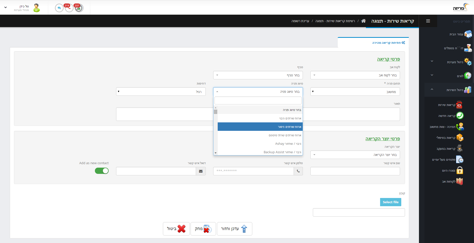 התחל להשתמש במערכת לניהול מערך השירות בענן של חברת פריזה.